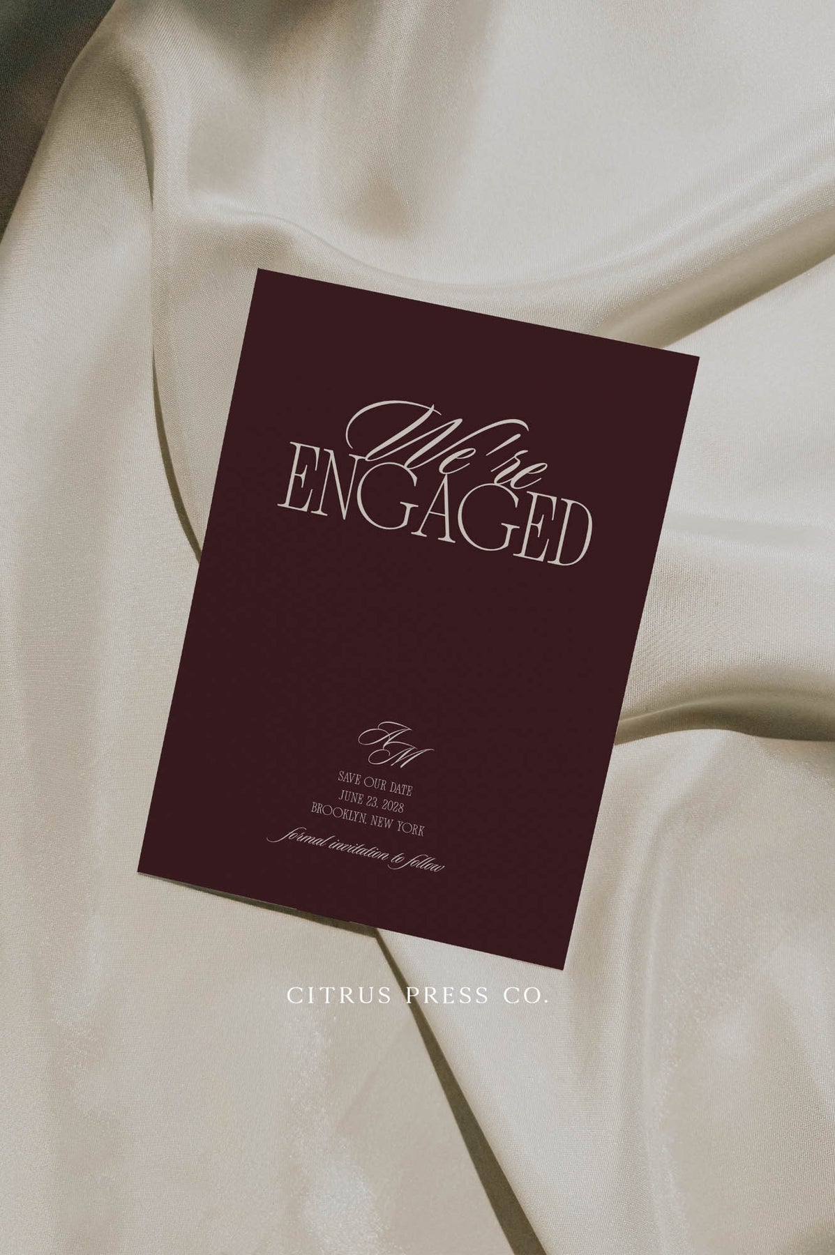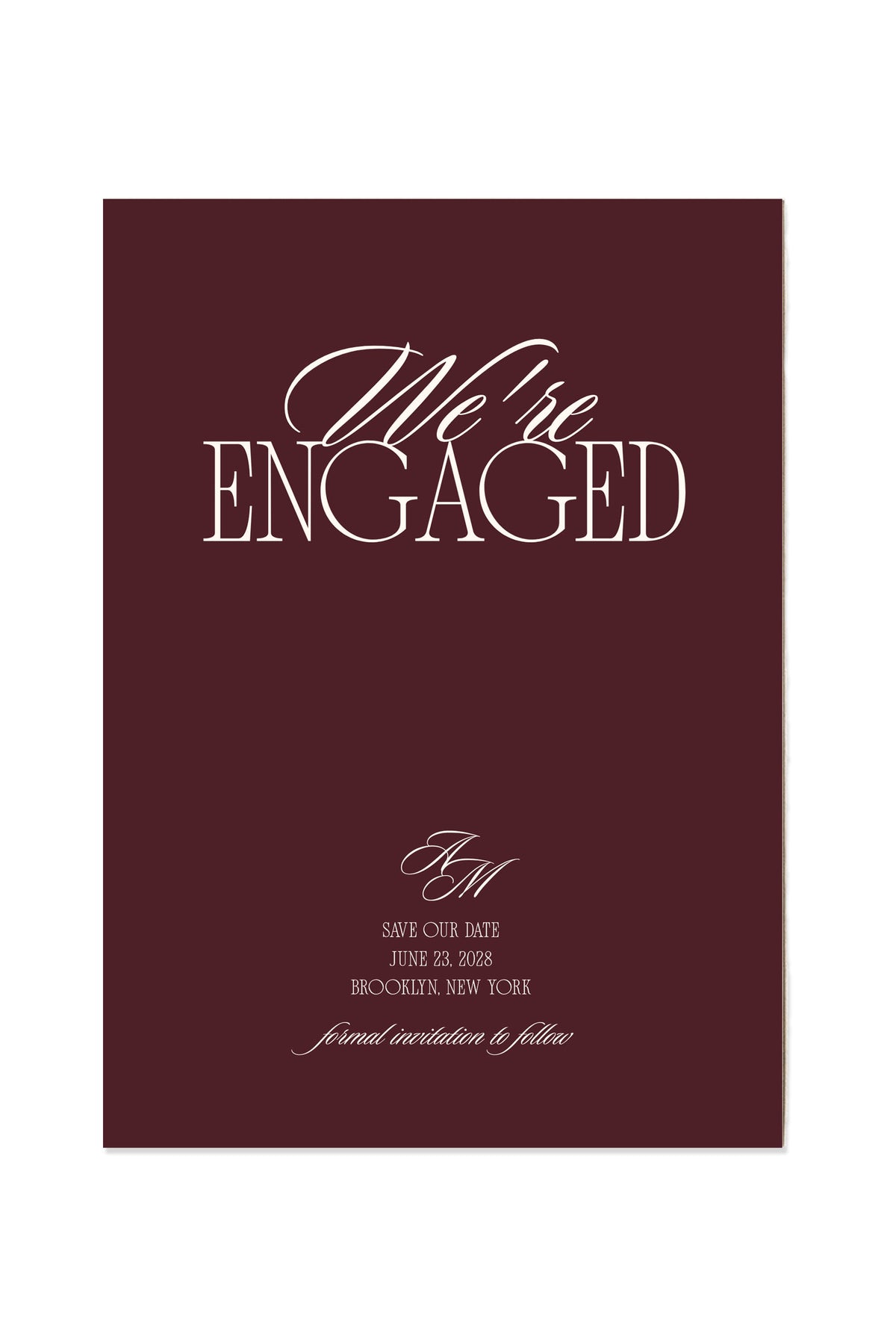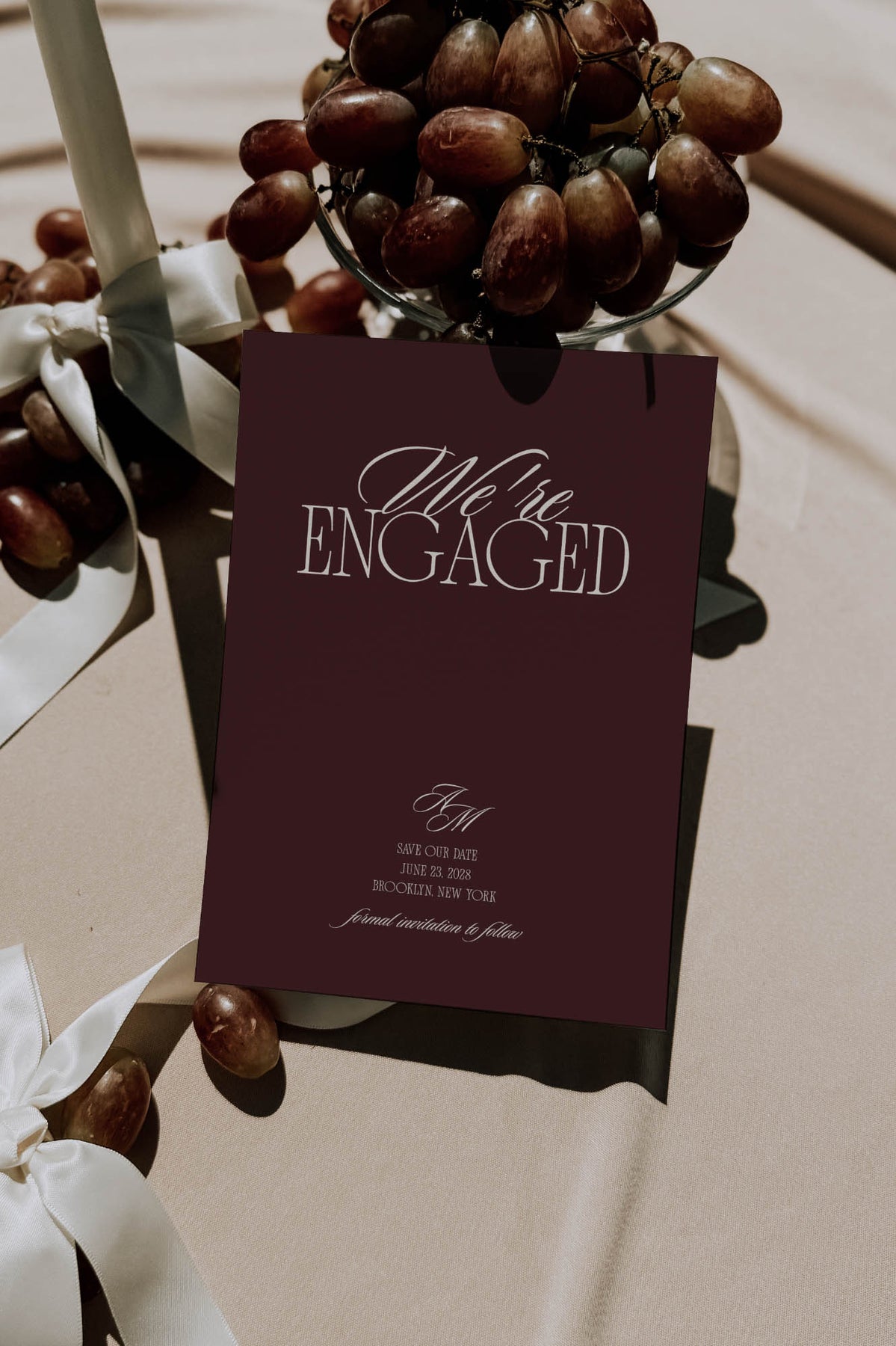 A burgundy old money save the date designed for couples who love timeless, formal wedding style. Featuring classic serif typography and a rich burgundy color palette, this luxe wedding announcement blends heritage elegance with a clean, minimalist layout.