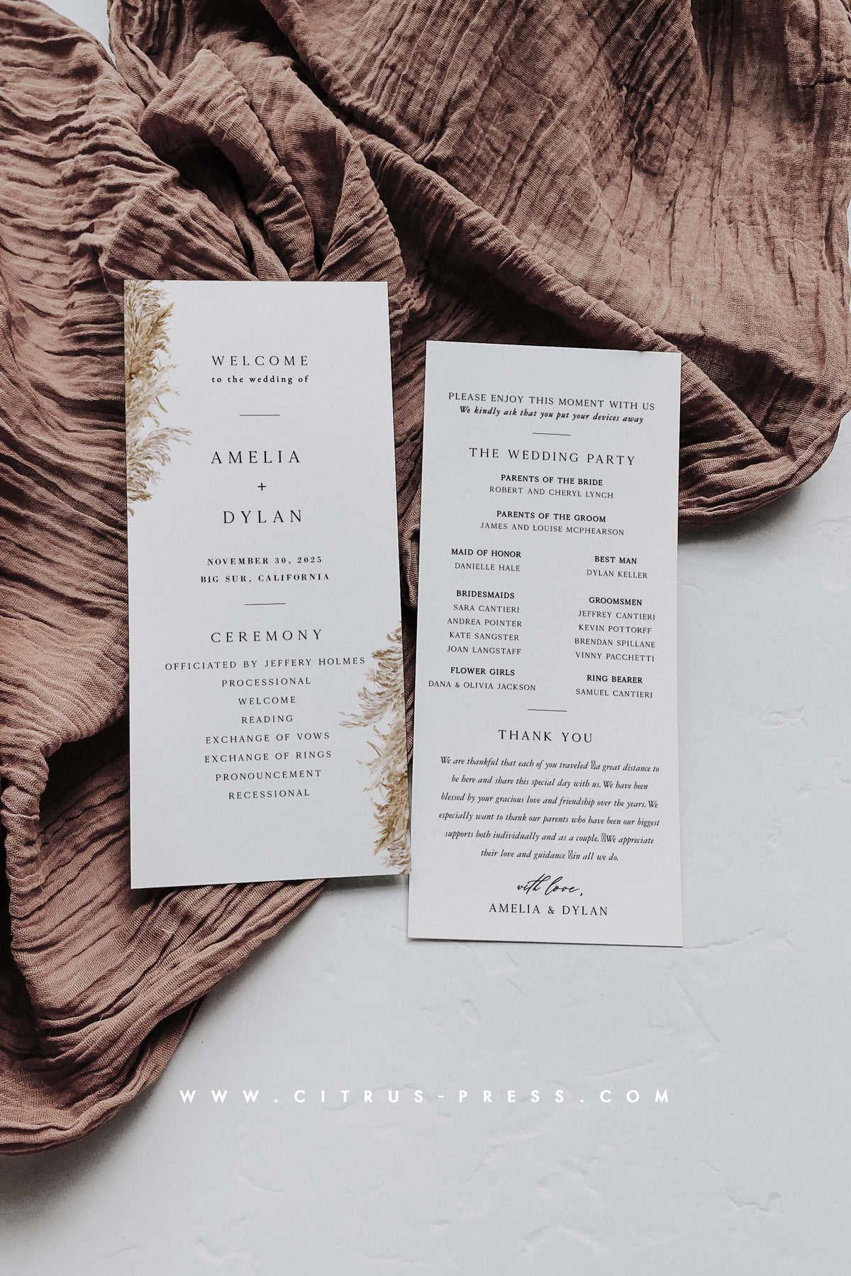 Pampas Grass Wedding Program | PDF DIY Editable Template | $15